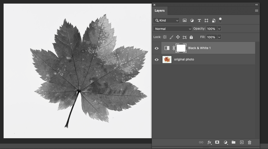 4) Finally, enable the black and white layer again, and you will have a black and white picture on black background.