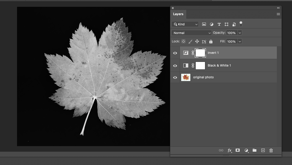 3) Disable the black and white layer and add an invert layer, and you have the inverted color picture;