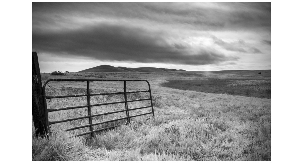 The lead photo is an open invitation through the pasture, winding along the nearly dry marsh, into the mountains and towards the light, at f/13, 1/160s and ISO 400. In post-processing, I added some grain. I have added it to my gallery “Light Matters“.