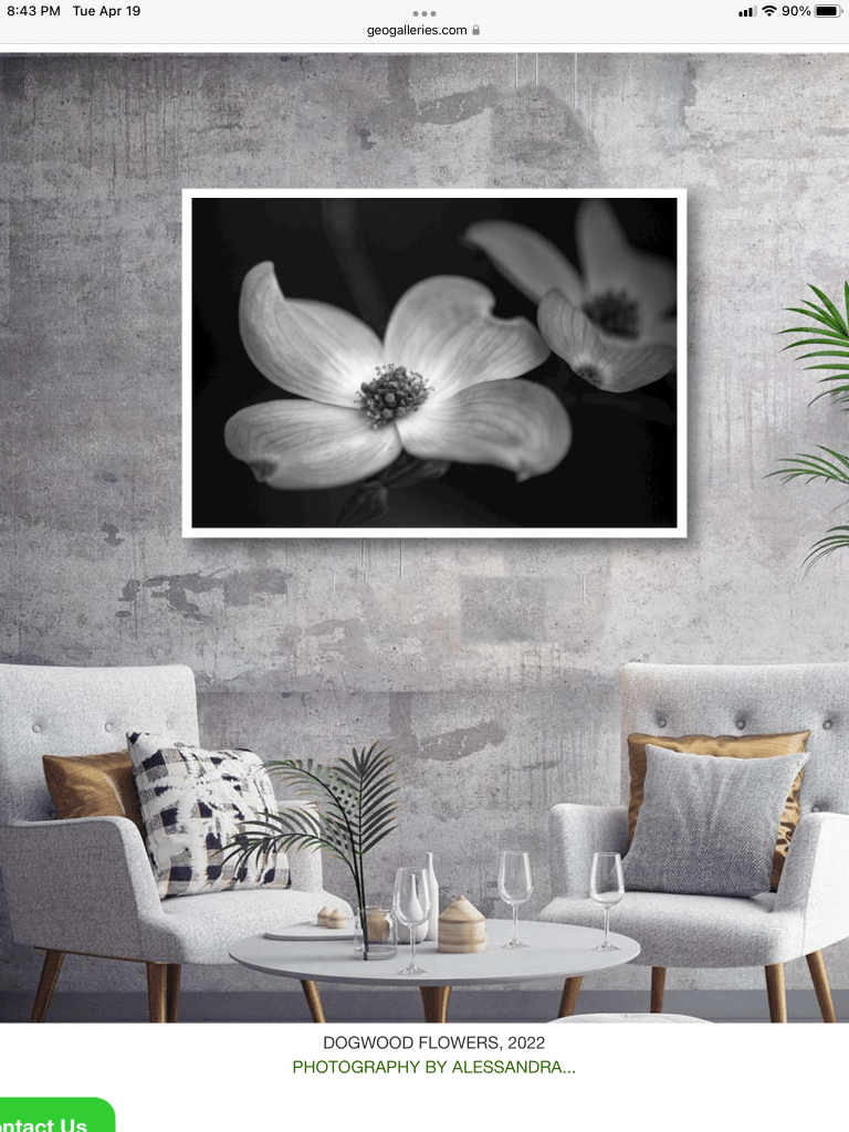 A third photo I took that day, I have posted on my botanical “flower” portfolio. GeoGalleries offers these room views with your art on the wall, and I made a screen shot because I think the decoration of the room looks pretty cool. But white chairs… not so sure I would like that in my house.