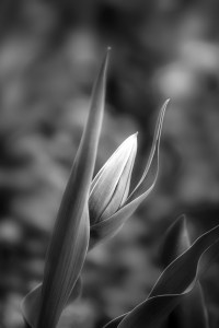 When I got home and started trying to convert the photos to black and white, I realized that separation and contrast were very difficult to achieve. Furthermore, because there was a breeze and I did not have a tripod and flash with me, I had to keep my lens open. I also had to use a wide aperture because the flowers were very close to each other (see pictures of garden above). A shallow depth of field, particularly when one cannot control the light, is often not flattering on black and white botanicals, resulting in lots of highlights and bright areas away from where the viewer’s eyes are supposed to go. Most photographs in “Winter Tulip” were taken with narrow apertures (f/16-f/22).