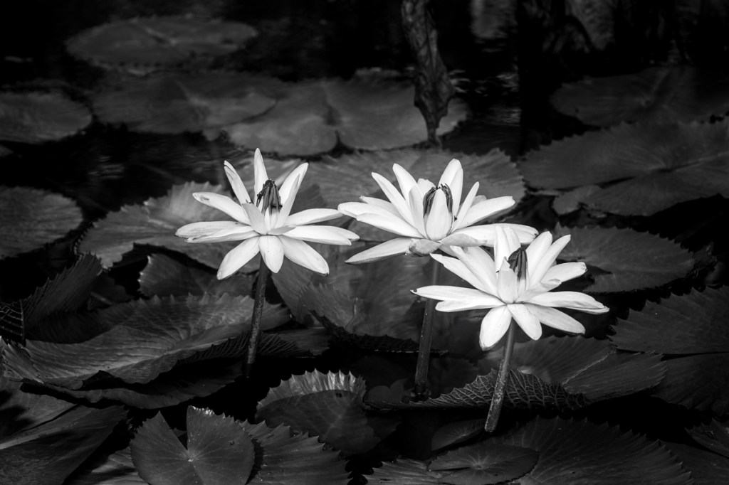 I took the featured image (f/8, 1/320s, ISO 320) handheld. Although there were no clouds in the sky, the light on the lilies was spotty due to the trees surrounding the pond, casting shadows.