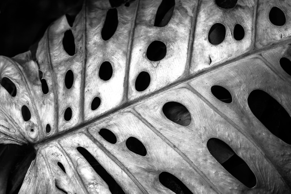 I took the photograph in the field when I was in Brazil last October. The photograph portrays a dry leaf of the Monstera deliciosa Liebmann. Commonly known as the Swiss cheese plant, it is a popular tropical houseplant prized for its large, glossy, and uniquely perforated leaves. Native to the rainforests of Central America, it thrives in warm, humid environments and can grow impressively large, both indoors and outdoors. Its aerial roots help it climb trees in the wild, while its distinctive leaves develop fenestrations as it matures, enhancing its striking appearance. In addition to its ornamental appeal, Monstera deliciosa produces edible fruit with a flavor reminiscent of pineapple and banana. Easy to care for, it prefers bright, indirect light and well-draining soil, making it a favorite among plant enthusiasts.