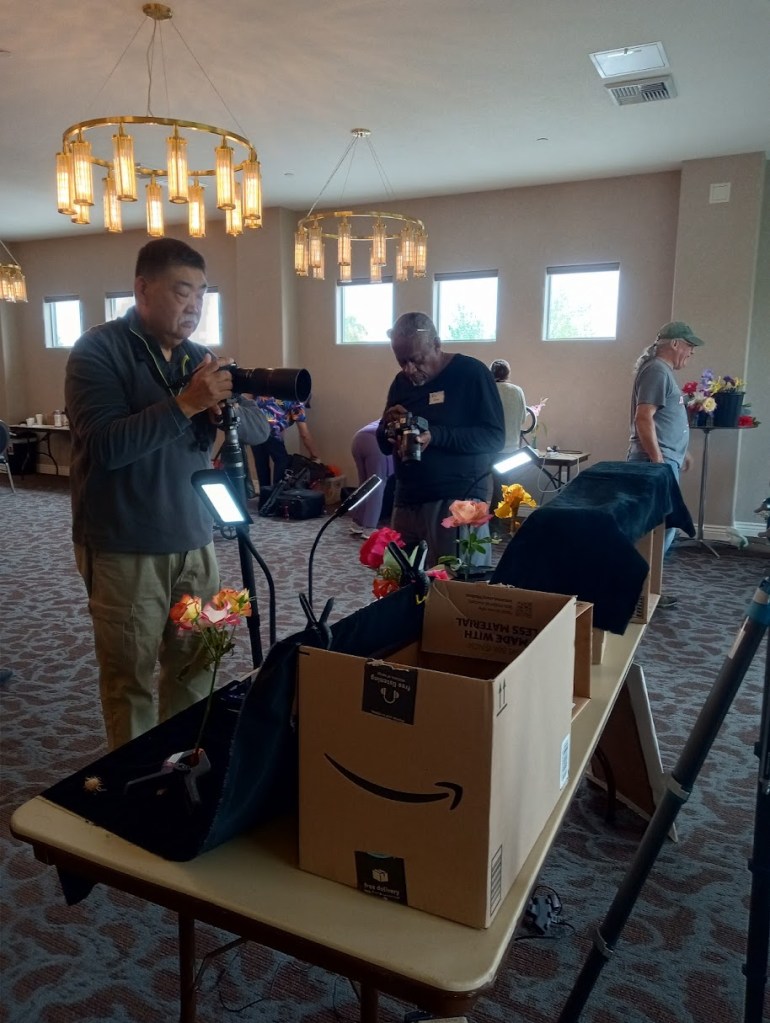 On April 26, 2025, I enjoyed helping to set up the flower displays for still life for Flower Portraits—Indoors and Outdoors – for the Gold Rush workshop. Susan Stoll lectured on traditional flower photography and Lynne Ellyn discussed painterly flower portraits. As I tried to help the participants, I also got to take a photo or two.