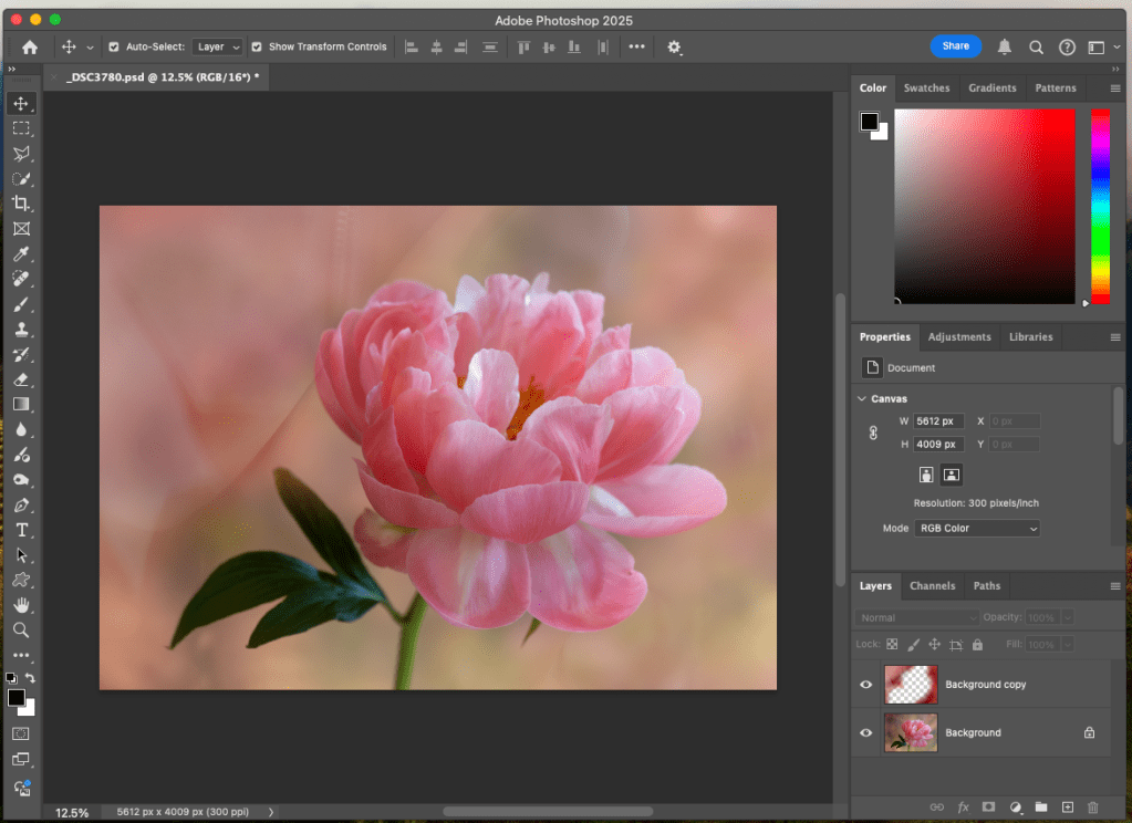 I set the texture’s blending mode to screen and the layer opacity to 60%, then I cleaned over the flower. Different effects can be obtained with the same texture but different opacities or blending modes.